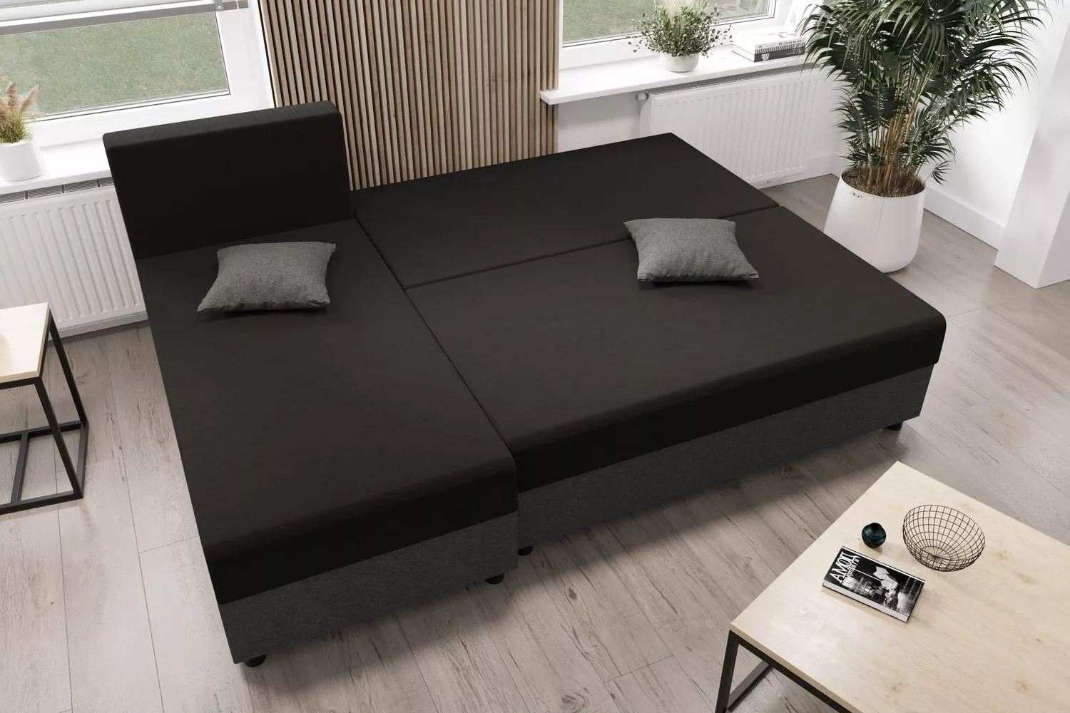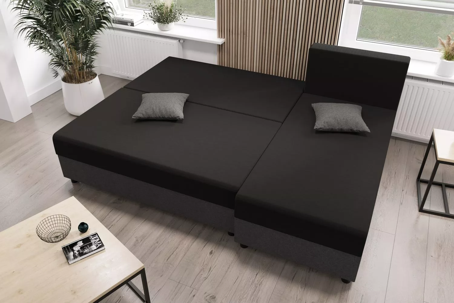 Moderní design sedačky Sanvi je vhodný do všech současných interiérů. Výhodou je rozkládací mechanismus, díky kterému jednoduše vytvoříte místo k přespání. Jistě uvítáte i úložný prostor. Zadní část je taktéž potažena látkou, tudíž můžete sedačku libovolně umístit v prostoru. Součástí jsou i dekorativní polštářky, které disponují snímatelným potahem.