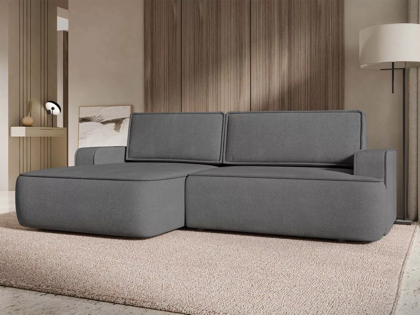 Rozkládací rohová sedačka s úložným prostorem BELLEVUE - tmavá šedá, levý roh