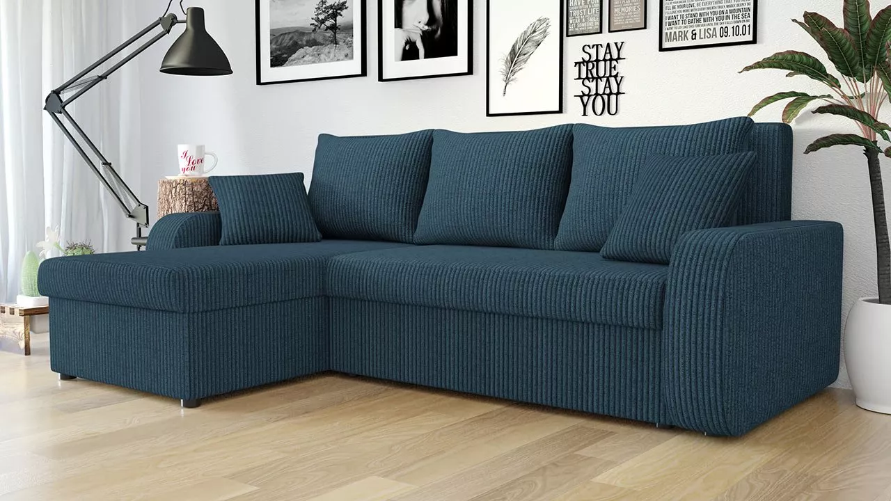 VÝPRODEJ - Sedačka na každodenní spaní s úložným prostorem KORNELIE - modrá