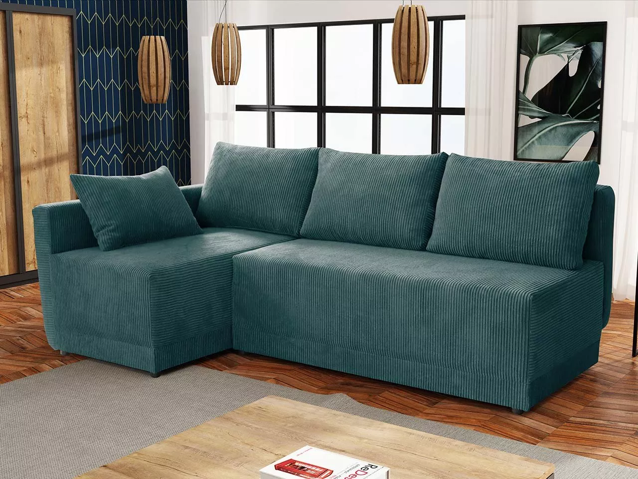 VÝPRODEJ - Rohová rozkládací sedací souprava UVERAL - tyrkysová, levý roh