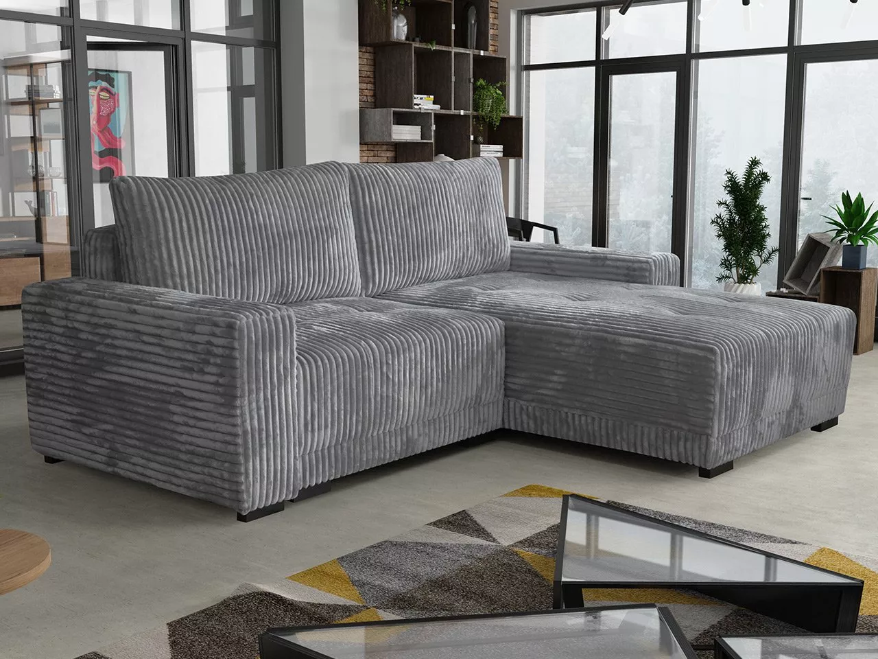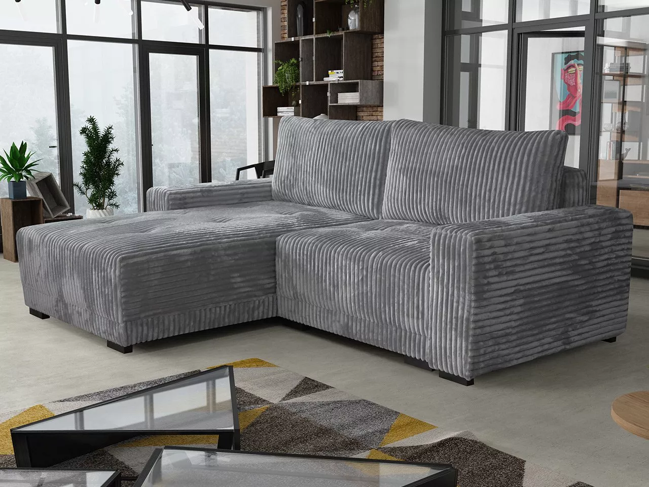 VÝPRODEJ - Rohová rozkládací sedačka OLLIONA - tmavá šedá