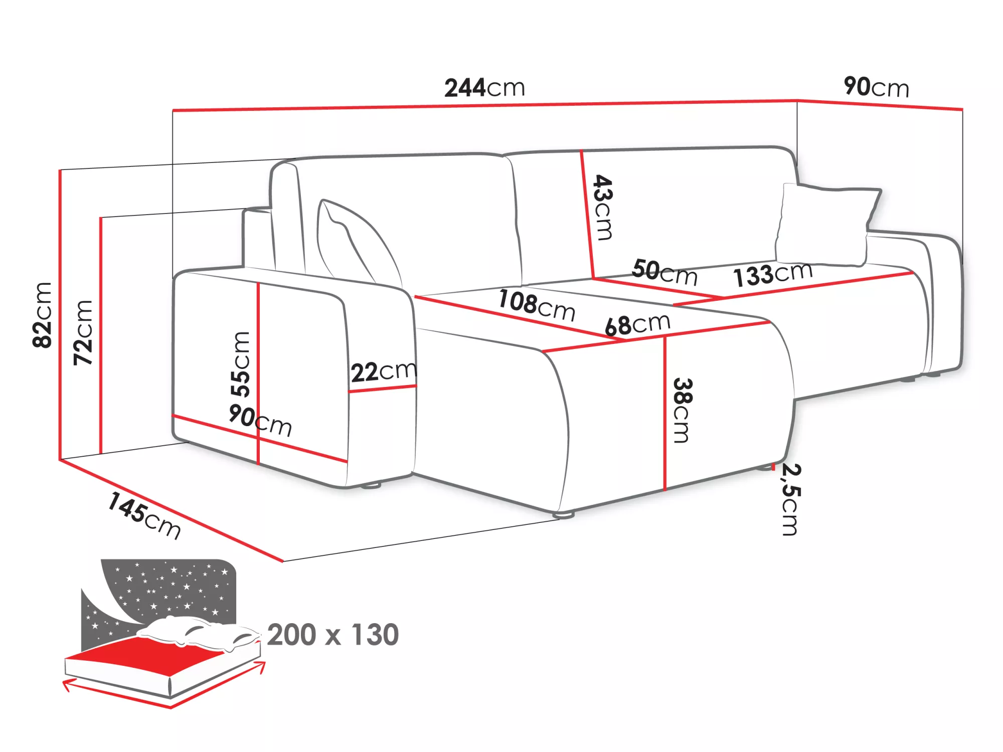Pohodlná rohová sedačka CLEBURNE nabízí spoustu místa k sezení i relaxaci. Díky jednoduchému mechanismu proměníte sedačku v prostorné lůžko o rozměrech 130x200 cm. Nechybí ani praktický úložný prostor na lůžkoviny či sezónní oblečení.
