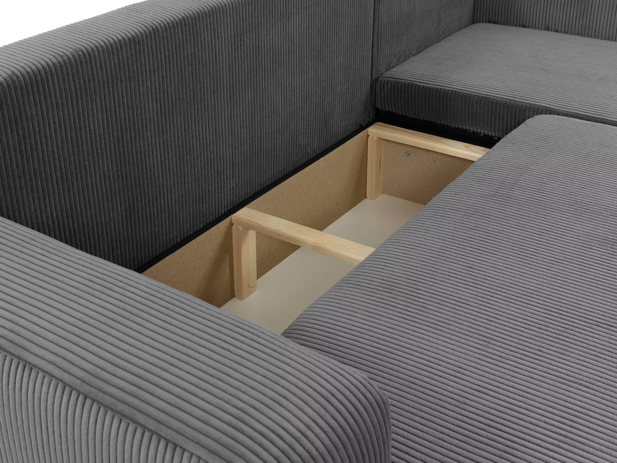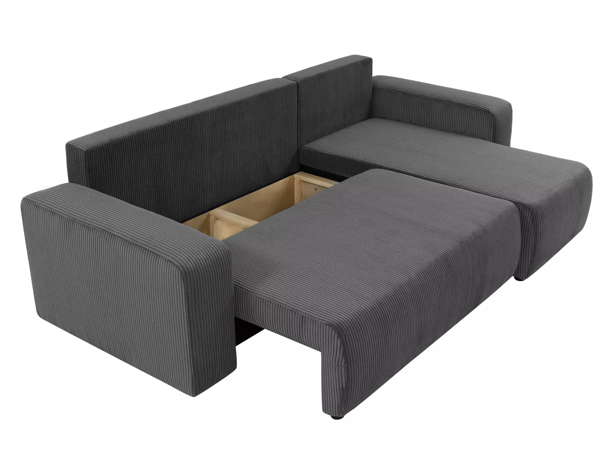 Pohodlná rohová sedačka CLEBURNE nabízí spoustu místa k sezení i relaxaci. Díky jednoduchému mechanismu proměníte sedačku v prostorné lůžko o rozměrech 130x200 cm. Nechybí ani praktický úložný prostor na lůžkoviny či sezónní oblečení.