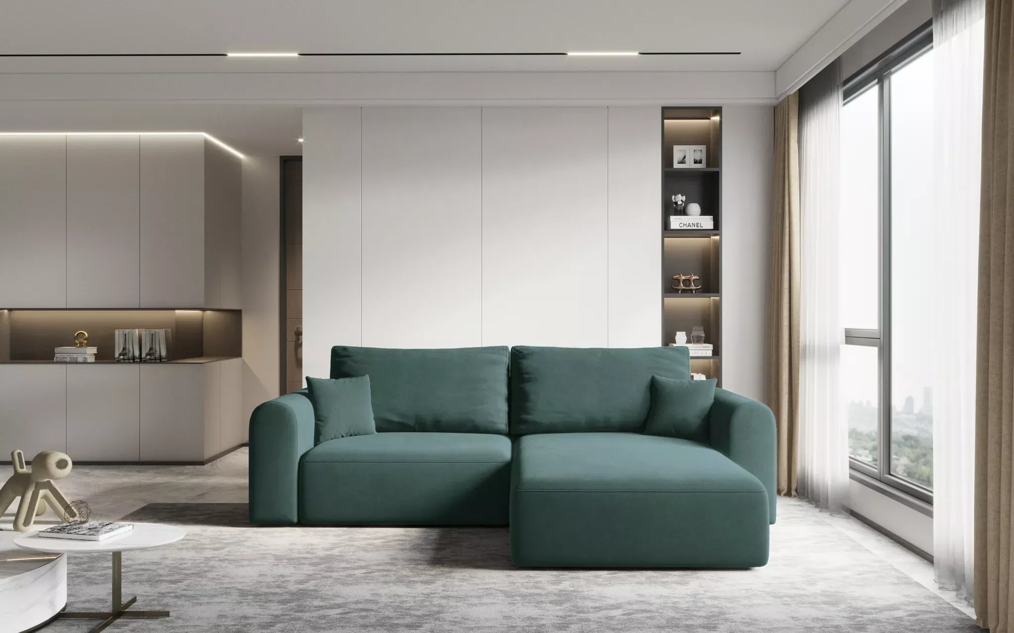 VÝPRODEJ - Rohová rozkládací sedací souprava ESTEL 1 - petrolejová, pravý roh
