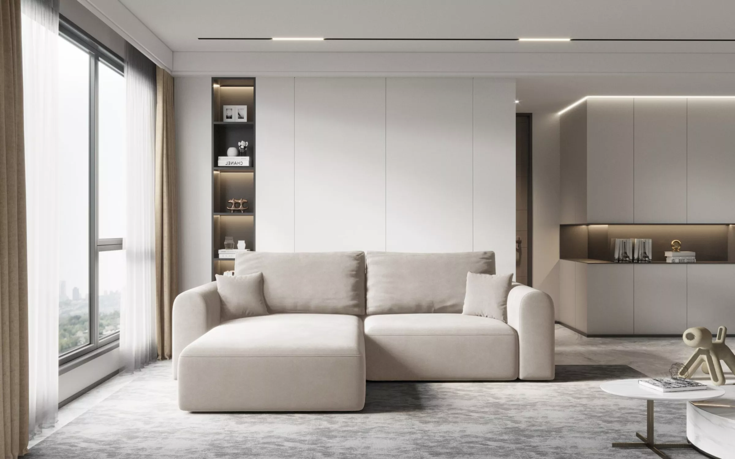 VÝPRODEJ - Rohová rozkládací sedací souprava ESTEL 1 - krémová, levý roh