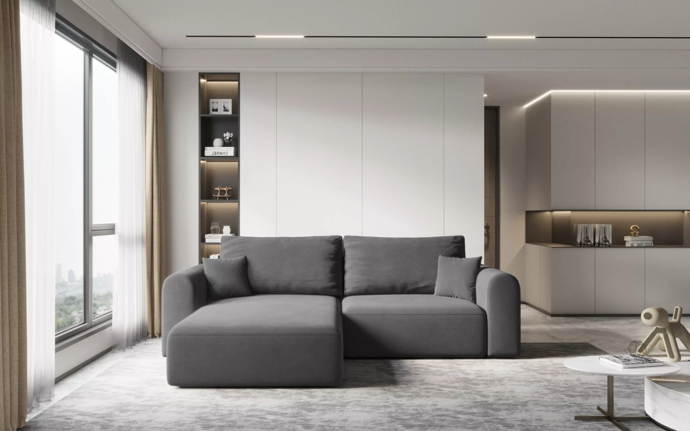 VÝPRODEJ - Rohová rozkládací sedací souprava ESTEL 1 - tmavě šedá, levý roh