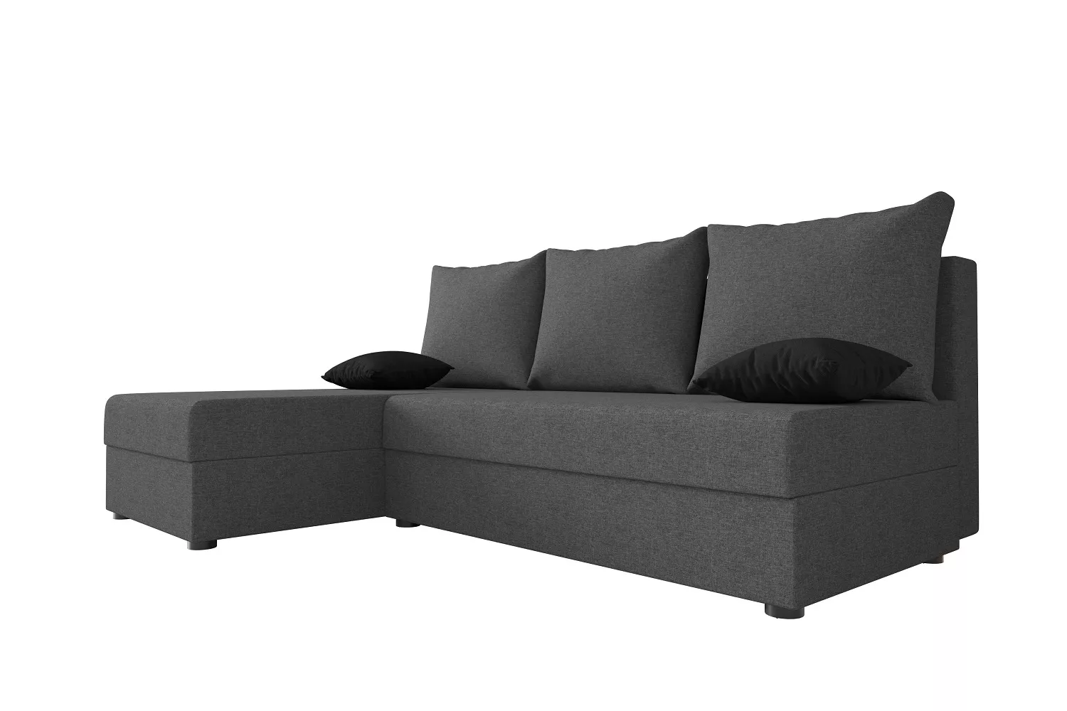 Moderní sedací souprava Hortenzie je vhodná do všech interiérů. Sedačka má tři velké polštáře se snímatelným potahem. Celý povrch včetně zadní části je potažen látkou. Jistě taky oceníte snadné rozkládání pohovky na lůžkovou podobu a úložný prostor. Konstrukci tvoří pevný dřevěný rám a orientace rohu je univerzální – tudíž si jí určíte až při sestavování, v pohodlí domova.