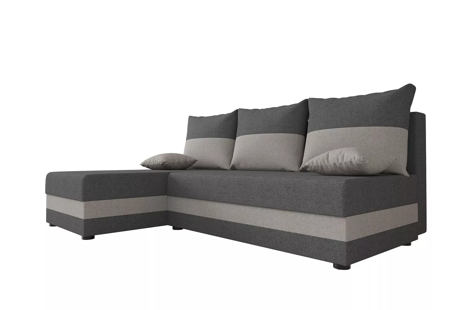 Moderní sedací souprava Hortenzie je vhodná do všech interiérů. Sedačka má tři velké polštáře se snímatelným potahem. Celý povrch včetně zadní části je potažen látkou. Jistě taky oceníte snadné rozkládání pohovky na lůžkovou podobu a úložný prostor. Konstrukci tvoří pevný dřevěný rám a orientace rohu je univerzální – tudíž si jí určíte až při sestavování, v pohodlí domova.