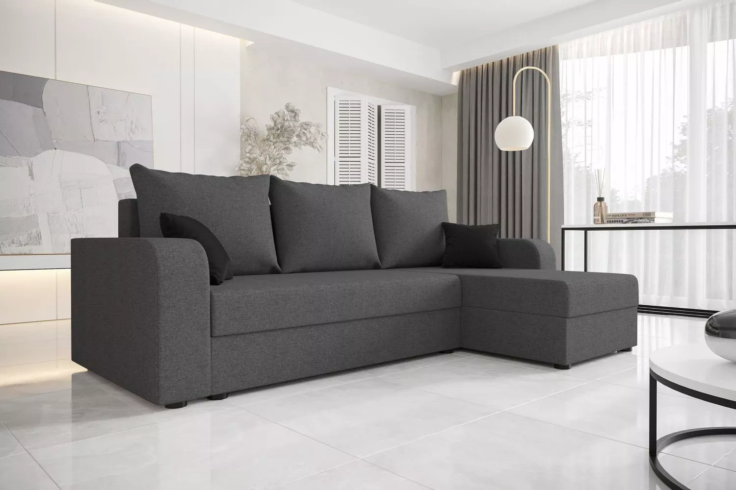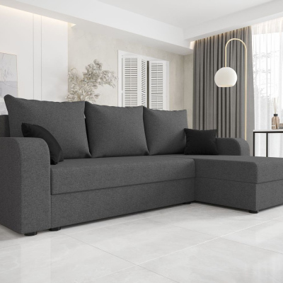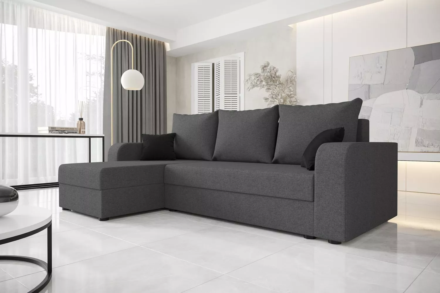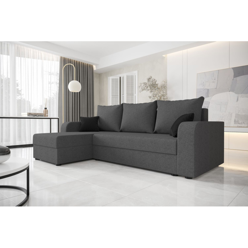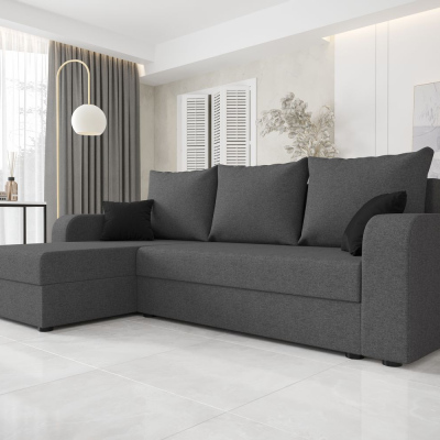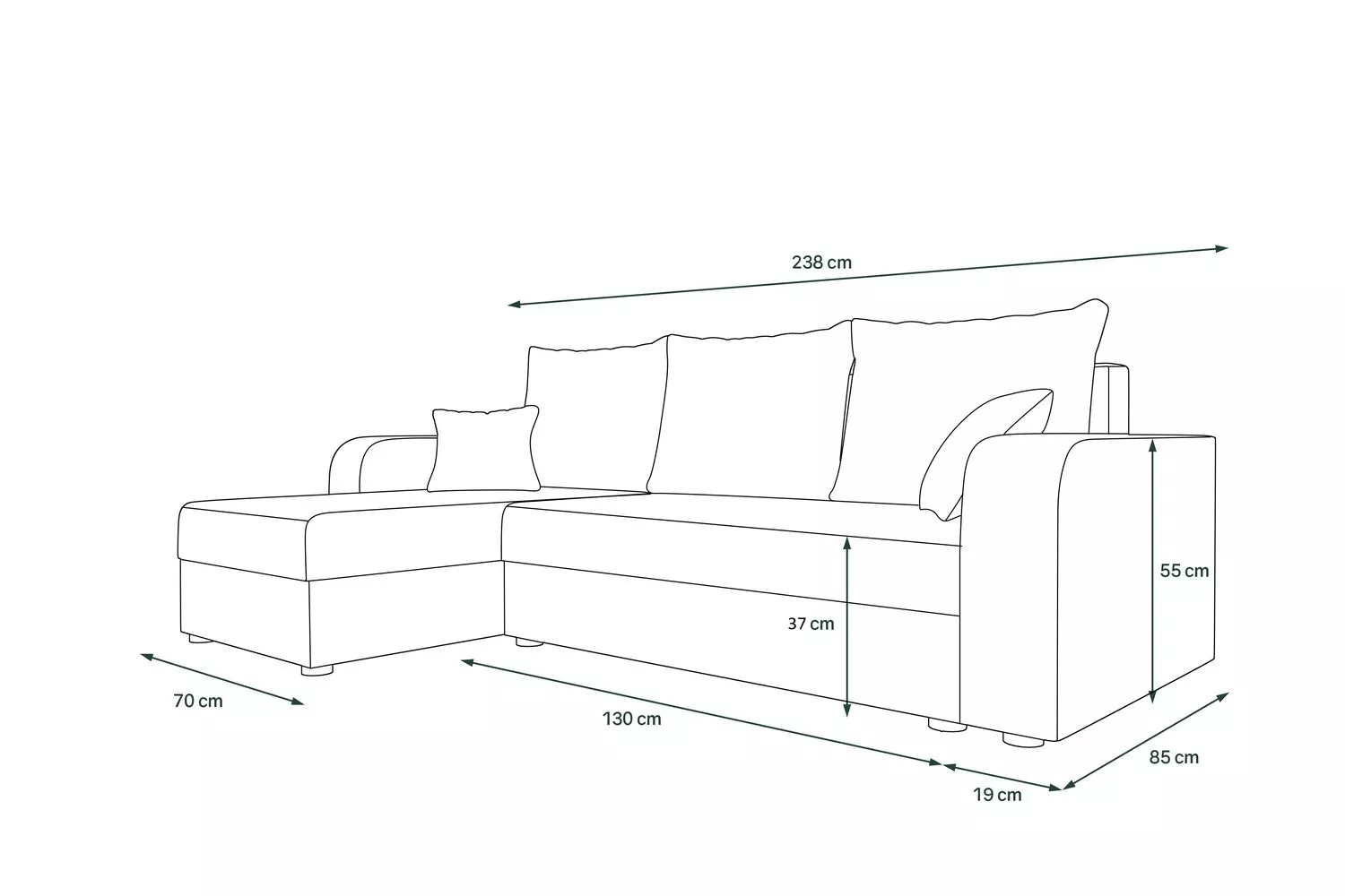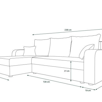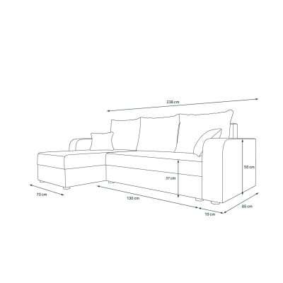 Rohová rozkládací sedačka Hortenzie disponuje mnoha benefity, mezi které určitě patří její rozkládací mechanismus. Během chvíle tak vykouzlíte prostorné lůžko. Další výhodou je úložný prostor pro uschování polštářů, či jiných lůžkovin. Tři velké polštáře se snímatelným potahem na zip dostanete k sedačce ZDARMA. Celý povrch včetně zadní části je potažen látkou. Konstrukci tvoří pevný dřevěný rám a orientace rohu je univerzální - tudíž si jí určíte až při sestavování, v pohodlí domova.