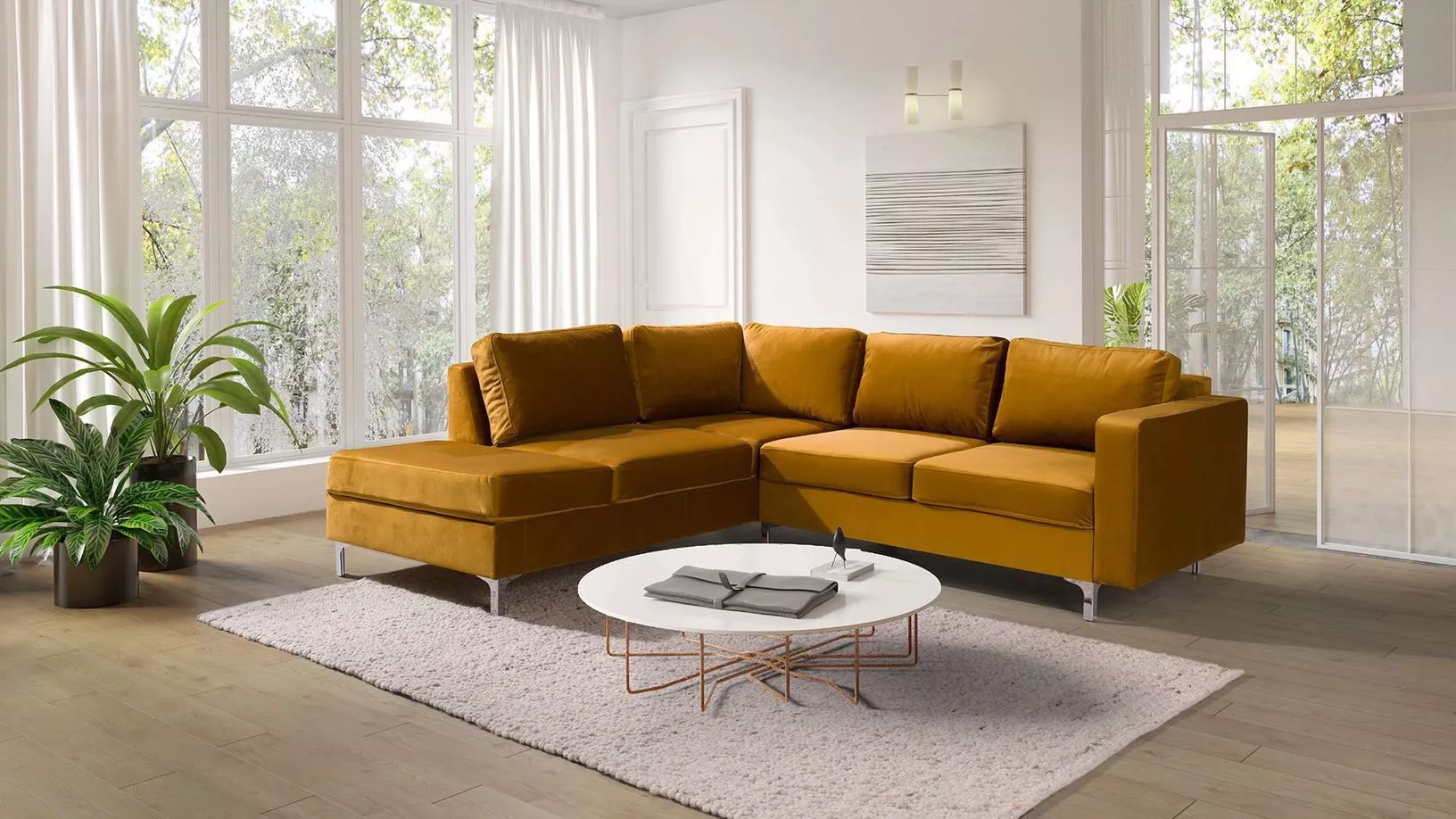 Rohová sedačka ORLIN - žlutá / kovové nohy