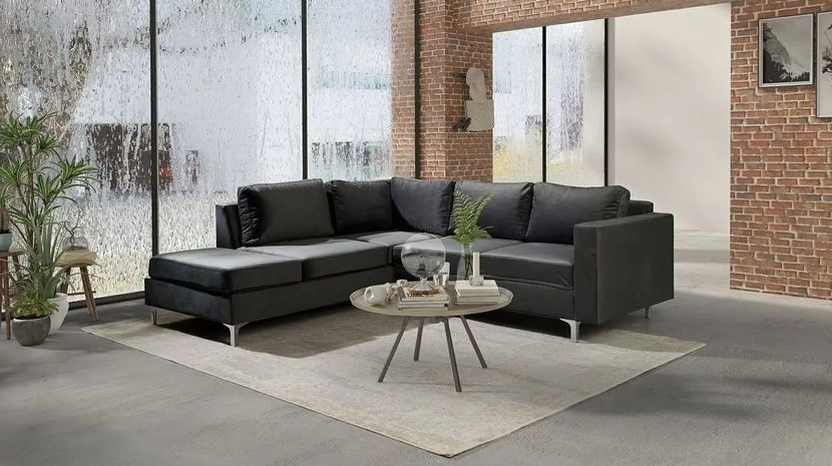 Rohová sedačka ORLIN - tmavě šedá / kovové nohy