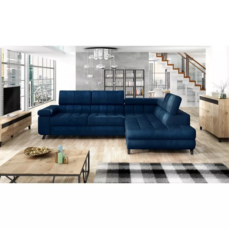 Rohová rozkládací sedačka s úložným prostorem OKLAHOMA - modrá, pravý roh