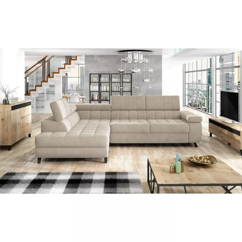 Rohová rozkládací sedačka s úložným prostorem OKLAHOMA - béžová, levý roh
