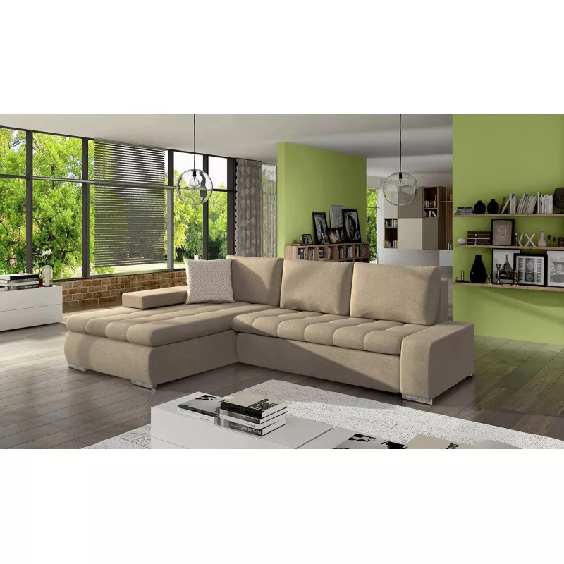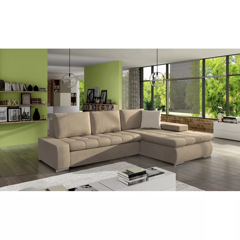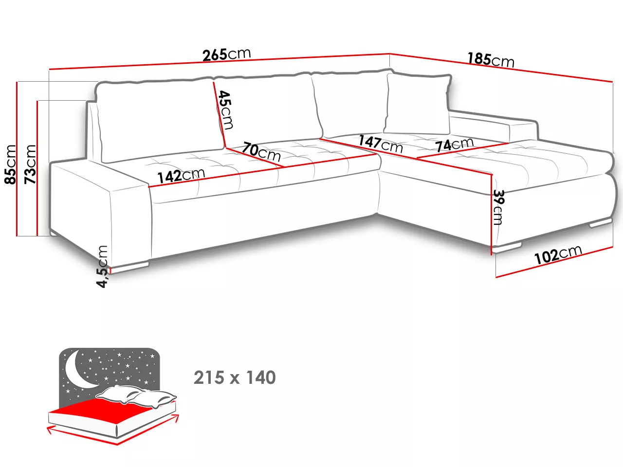 Rohová sedací souprava ABEL 2 se vyznačuje stylovým designem. Rozkládací sedačka, která je k dispozici v nejmódnější barevné kombinaci, zkrášlí interiér vyzdobený v moderním stylu. Dá vám prostor na pohodlný odpočinek po náročném dni a umožní vám trávit volný čas s přáteli a rodinou. Jednoduchým rozložením získáte spací plochu o rozměrech 140x215 cm. V sedací soupravě naleznete praktický úložný prostor na ložní prádlo, který lze také například využít jako místo pro úschovu sezónního oblečení.