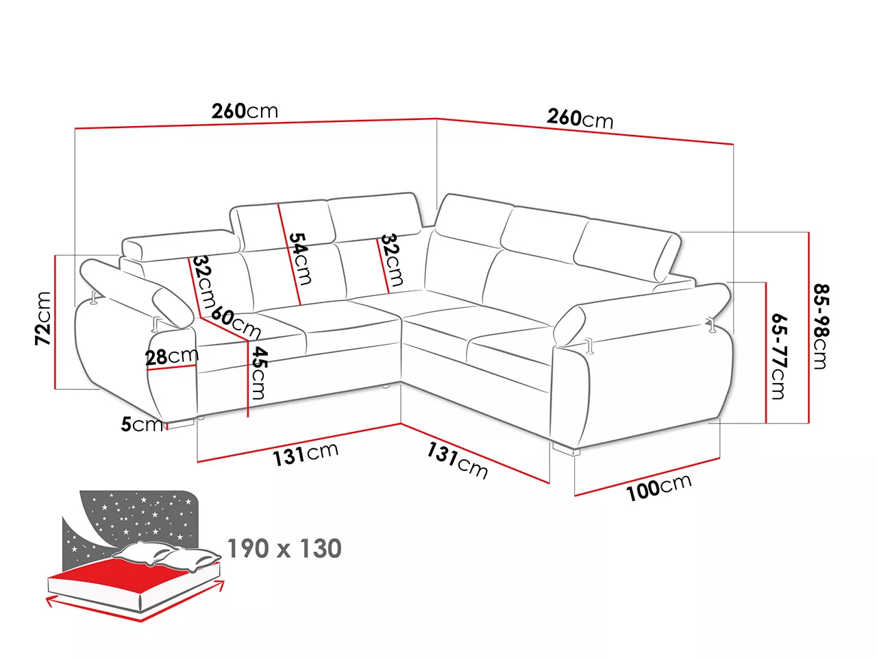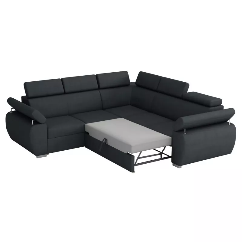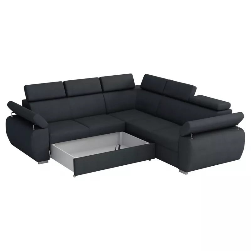 Rozkládací rohová sedačka ORITUKO MAXI se vyznačuje stylovým designem. Rozkládací sedačka, která je k dispozici v nejmódnější barevné kombinaci, zkrášlí interiér vyzdobený v moderním stylu. Dá vám prostor na pohodlný odpočinek po náročném dni a umožní vám trávit volný čas s přáteli a rodinou. Jednoduchým rozložením získáte spací plochu o rozměrech 130x190 cm. V sedací soupravě naleznete praktický úložný prostor na ložní prádlo, který lze například také využít jako místo pro úschovu sezónního oblečení. Zadní část sedačky je čalouněná látkou, což umožňuje její umístění kdekoli v místnosti. Výhodou sedací soupravy jsou nastavitelné opěrky hlavy, které zvyšují pocit uvolnění a relaxace.