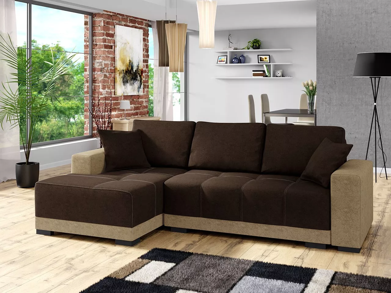 Rohová sedací souprava s úložným prostorem FELIPU - béžová / hnědá, levý roh