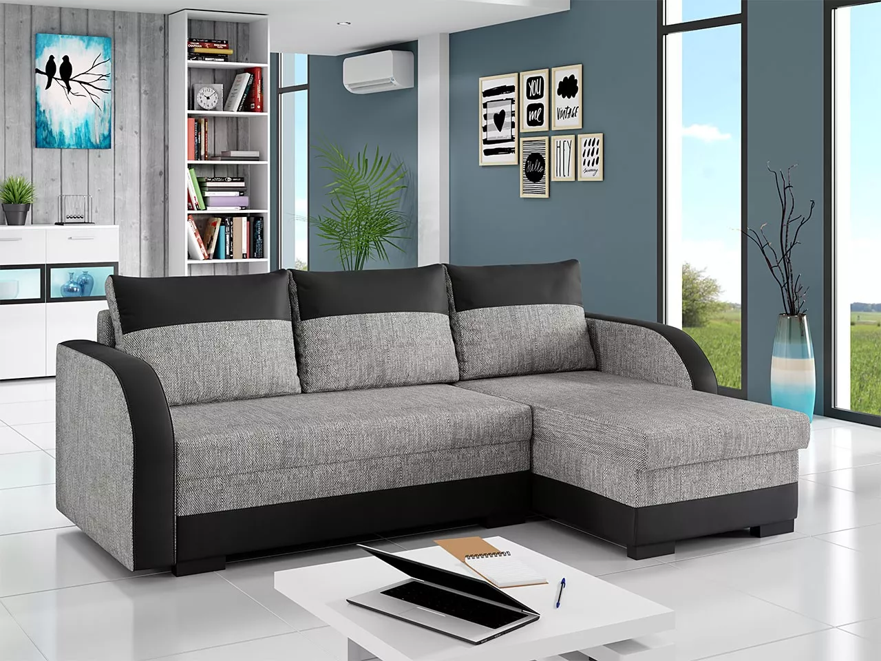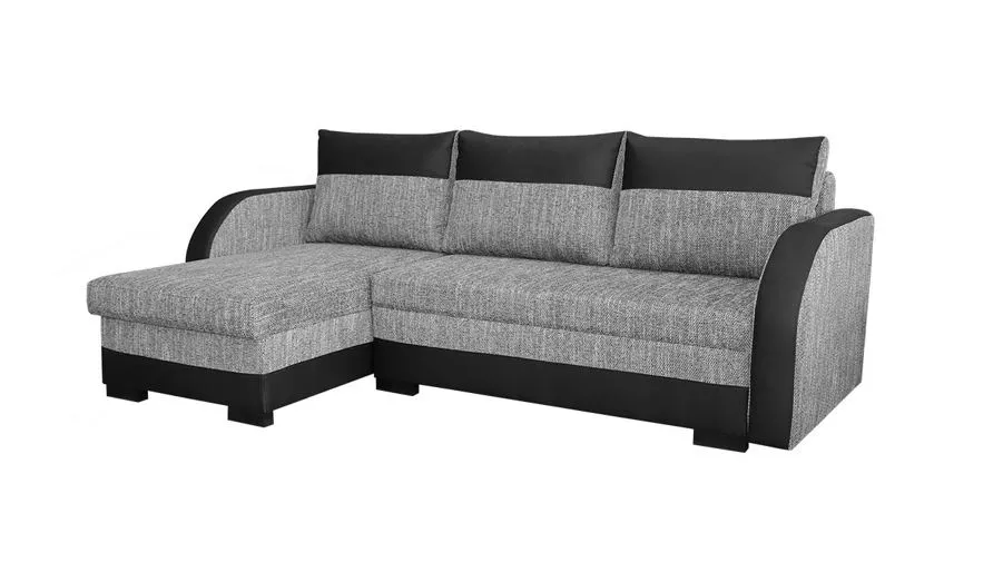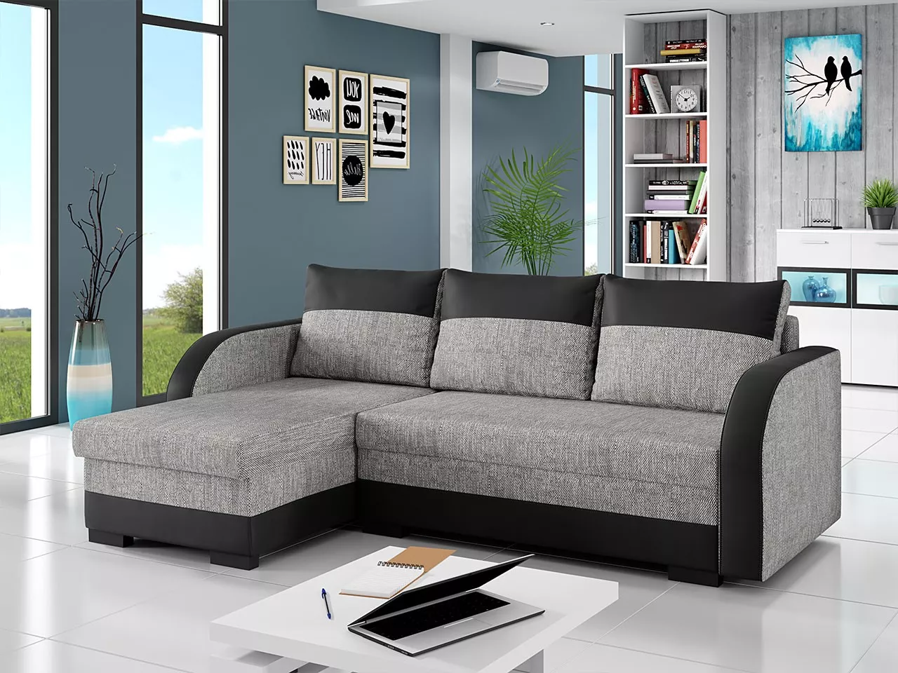 Rozkládací sedačka s úložným prostorem CARACAS - černá ekokůže / šedá
