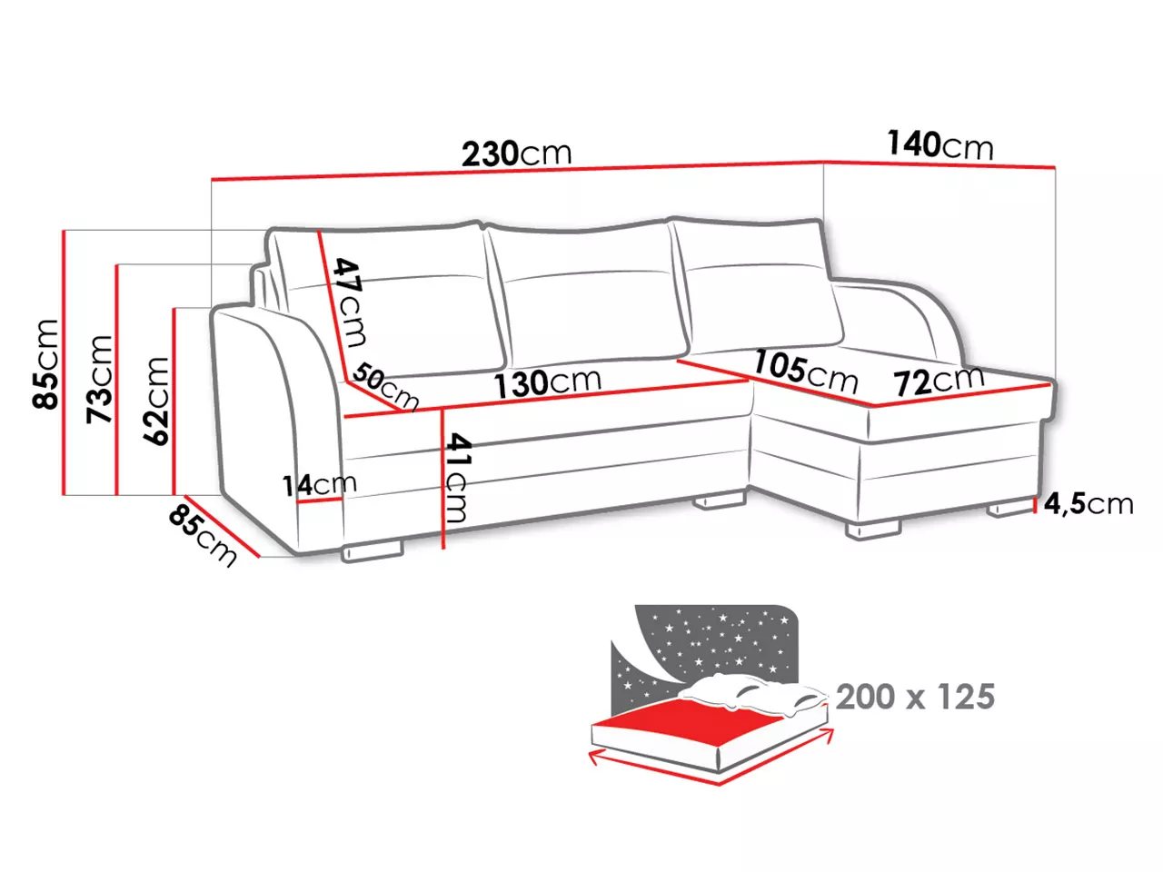 Rozkládací sedačka s úložným prostorem CARACAS se vyznačuje stylovým designem. Dá vám prostor na pohodlný odpočinek po náročném dni a umožní vám trávit volný čas s přáteli a rodinou. Jednoduchým rozložením získáte spací plochu o rozměrech 125x200 cm. V sedací soupravě naleznete praktický úložný prostor na ložní prádlo, který lze například také využít jako místo pro úschovu sezónního oblečení. Zadní část sedačky je čalouněná látkou, což umožňuje její umístění kdekoli v místnosti.