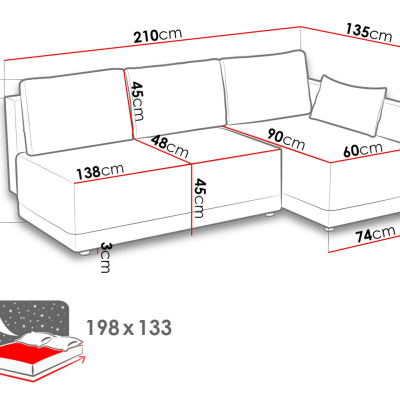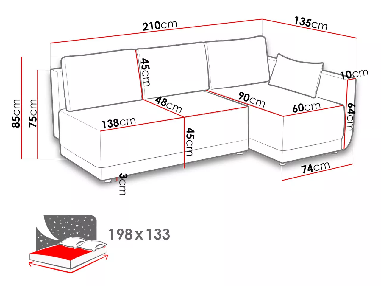 Rohová rozkládací sedací souprava UVERAL se vyznačuje stylovým designem. Rozkládací sedačka, která je k dispozici v nejmódnější barevné kombinaci, zkrášlí interiér vyzdobený v moderním stylu. Dá vám prostor na pohodlný odpočinek po náročném dni a umožní vám trávit volný čas s přáteli a rodinou. Jednoduchým rozložením získáte spací plochu o rozměrech 133x198 cm. V sedací soupravě naleznete praktický úložný prostor na ložní prádlo, který lze například také využít jako místo pro úschovu sezónního oblečení.