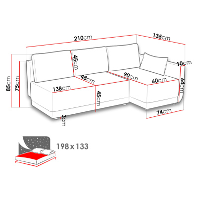 Rohová rozkládací sedací souprava UVERAL se vyznačuje stylovým designem. Rozkládací sedačka, která je k dispozici v nejmódnější barevné kombinaci, zkrášlí interiér vyzdobený v moderním stylu. Dá vám prostor na pohodlný odpočinek po náročném dni a umožní vám trávit volný čas s přáteli a rodinou. Jednoduchým rozložením získáte spací plochu o rozměrech 133x198 cm. V sedací soupravě naleznete praktický úložný prostor na ložní prádlo, který lze například také využít jako místo pro úschovu sezónního oblečení.