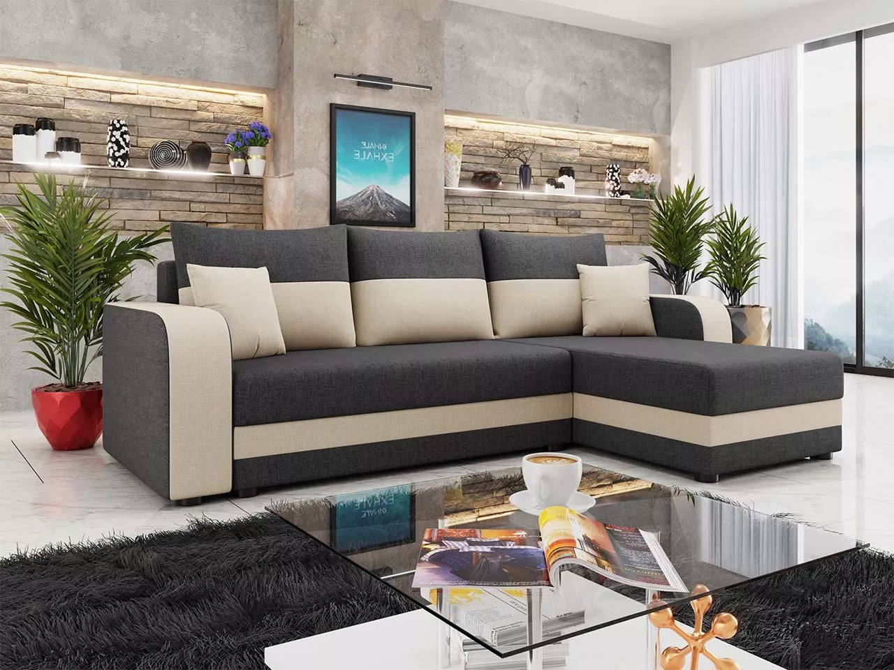 Rohová sedačka na každodenní spaní HORING - šedá / béžová
