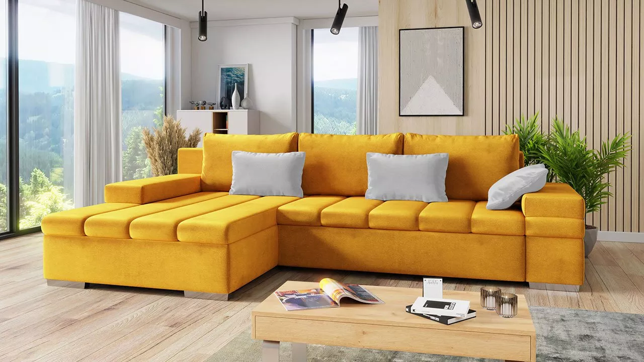 Rohová rozkládací sedačka ZELMA - žlutá / šedá, levý roh