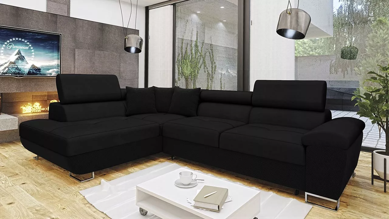 Rohová rozkládací sedačka SAN DIEGO - černá, levý roh