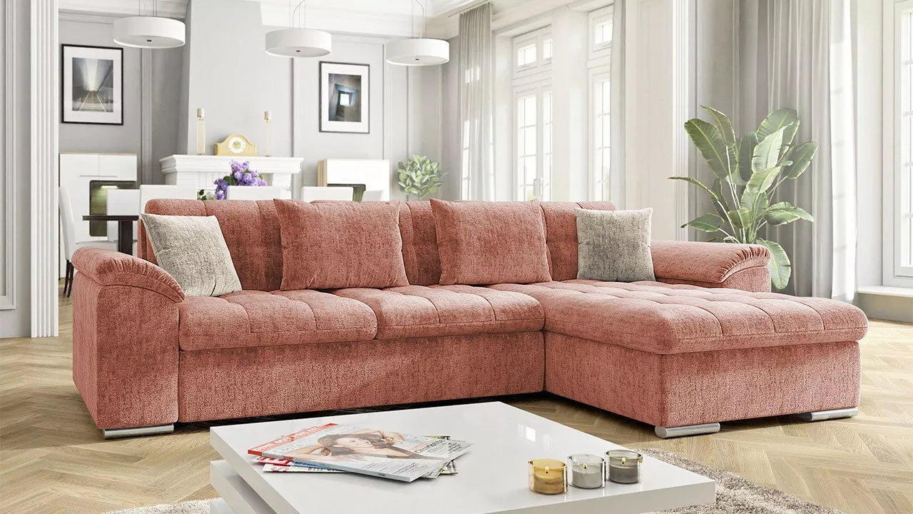 Rohová sedačka na každodenní spaní DELFINA - růžová, pravý roh