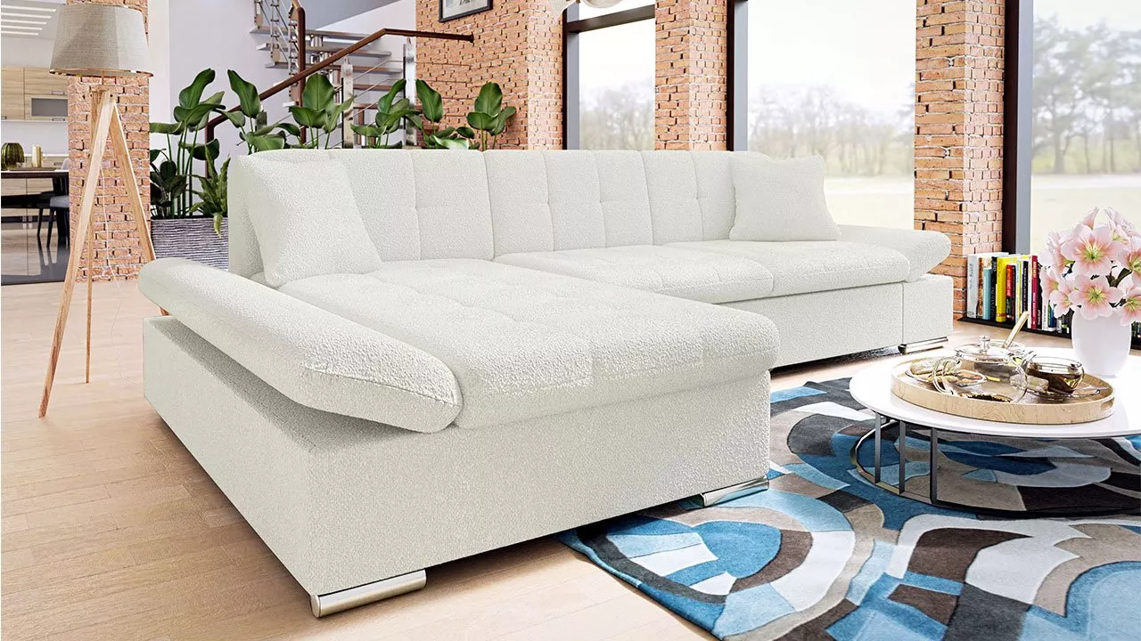 Rohová sedačka na každodenní spaní MARLA - bílá, levý roh