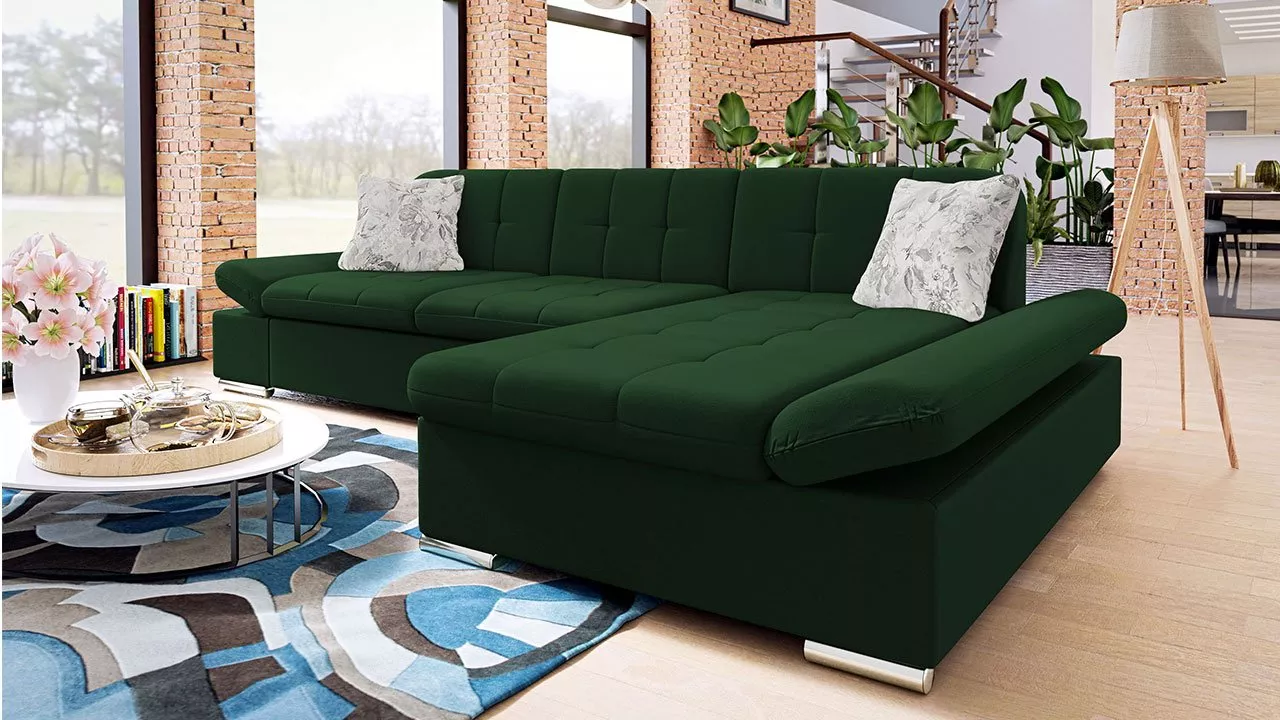 Rohová sedačka na každodenní spaní MARLA - tmavá zelená, pravý roh