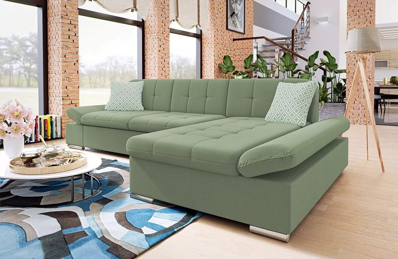 Moderní rohová sedačka HARUKA - světlá zelená 1, pravý roh