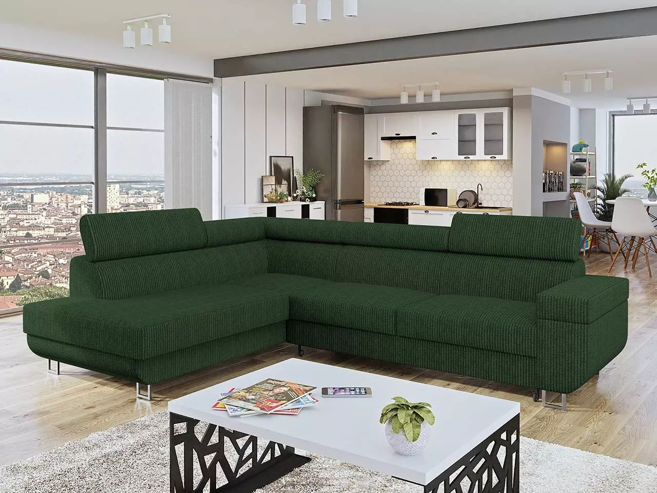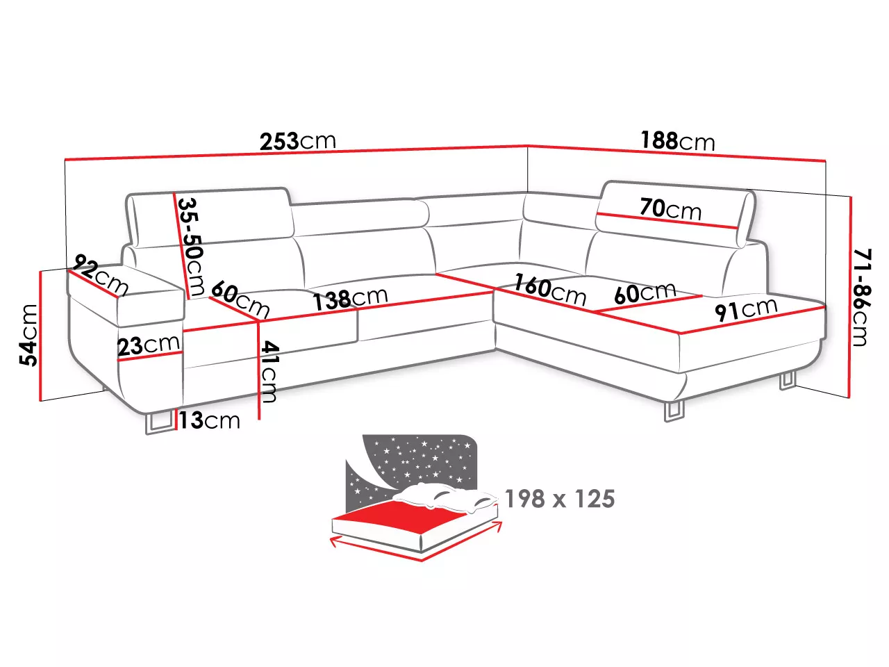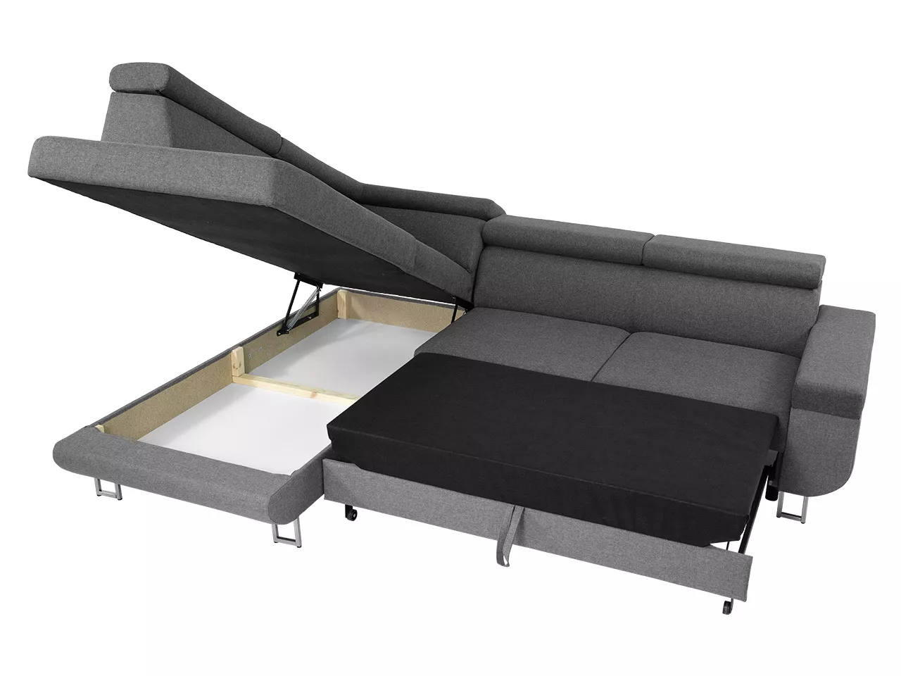 Moderní sedací souprava FAYA nabízí funkci každodenního spaní o lůžku 125x198 cm a praktický úložný prostor. Jistě oceníte polohovatelné opěrky hlavy pro maximální komfort při relaxaci. Zadní část sedačky je čalouněná látkou, což umožňuje její umístění kdekoli v místnosti.