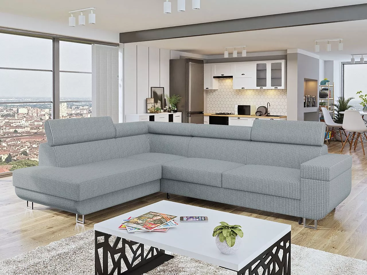 Moderní sedací souprava FAYA nabízí funkci každodenního spaní o lůžku 125x198 cm a praktický úložný prostor. Jistě oceníte polohovatelné opěrky hlavy pro maximální komfort při relaxaci. Zadní část sedačky je čalouněná látkou, což umožňuje její umístění kdekoli v místnosti.