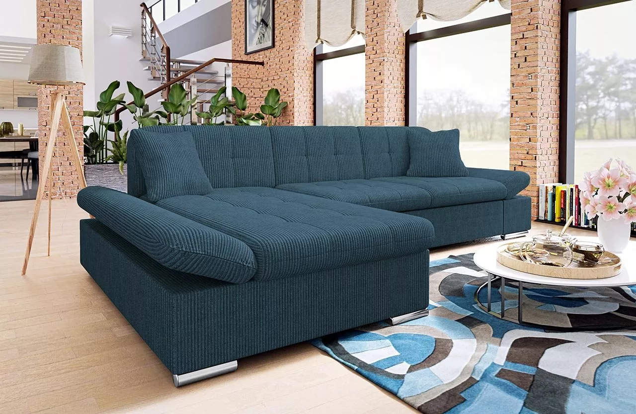 Rohová sedačka na každodenní spaní MARLA - modrá, levý roh