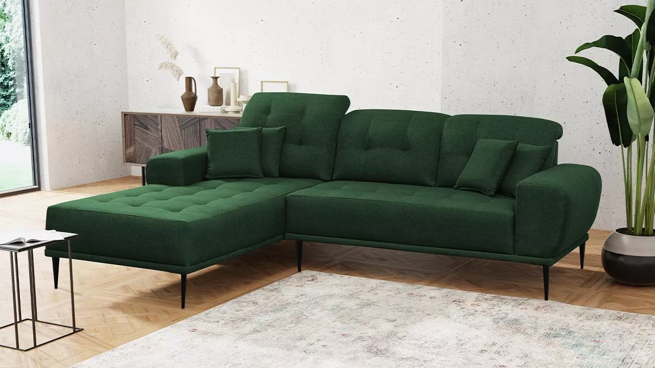 Moderní rohová sedací souprava RURI - tmavá zelená, levý roh