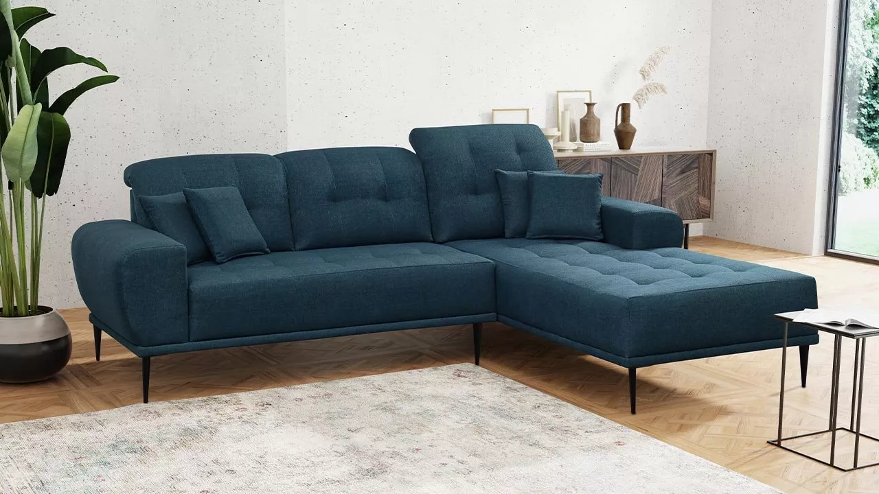 Moderní rohová sedací souprava RURI - modrá, pravý roh
