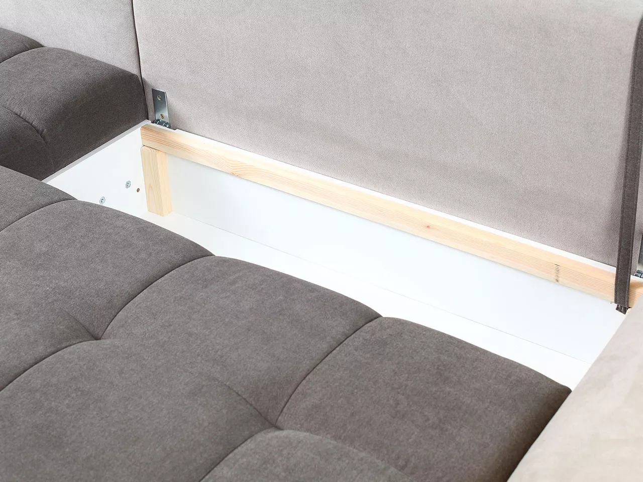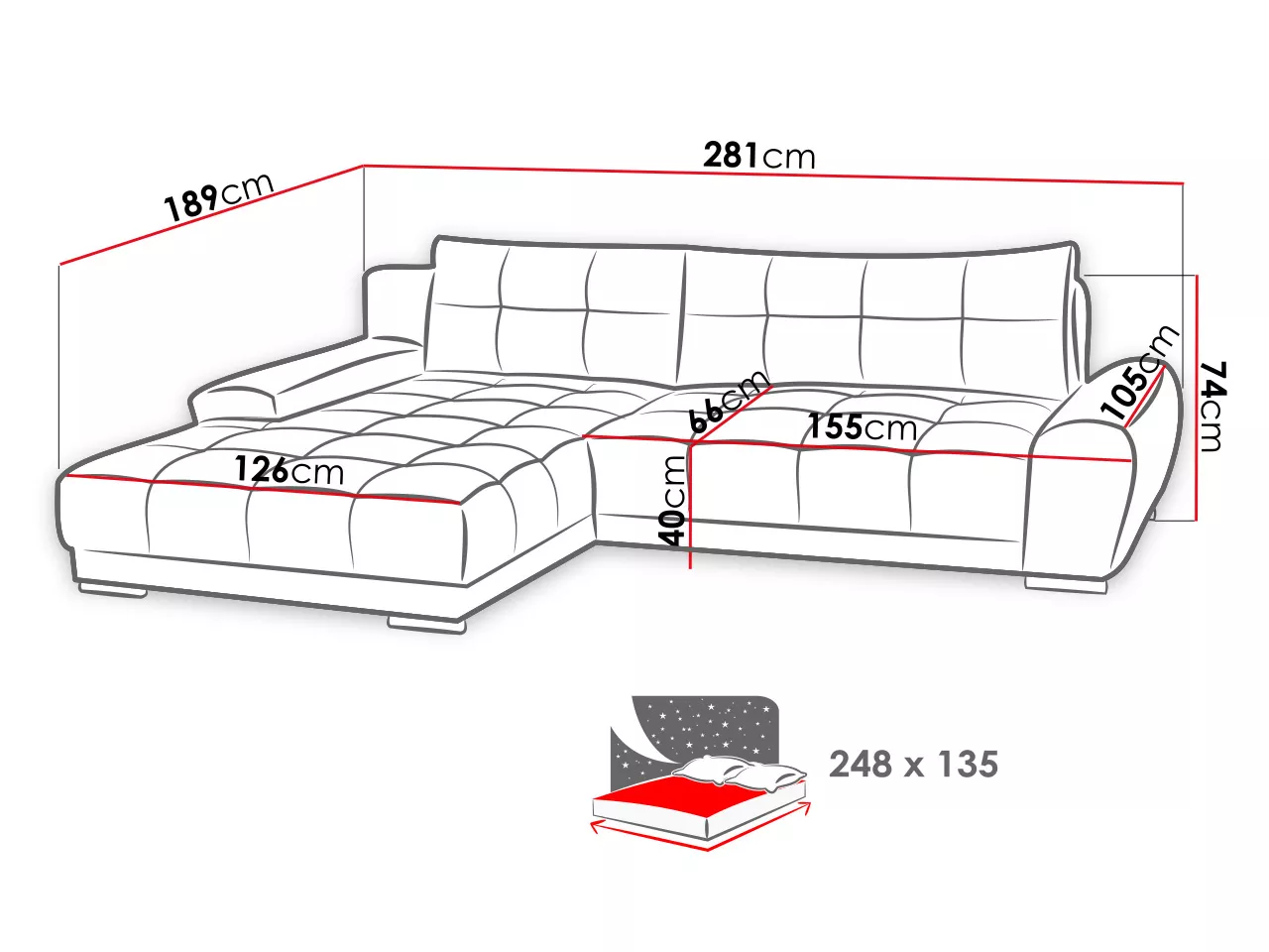 Rohová sedačka HARUNA nabízí funkci každodenního spaní o lůžku 135x248 cm. O vysoký komfort při relaxaci se postará široká lenoška a pohodlné opěradlo ve formě volně ložených polštářů. Nechybí ani praktický úložný prostor.