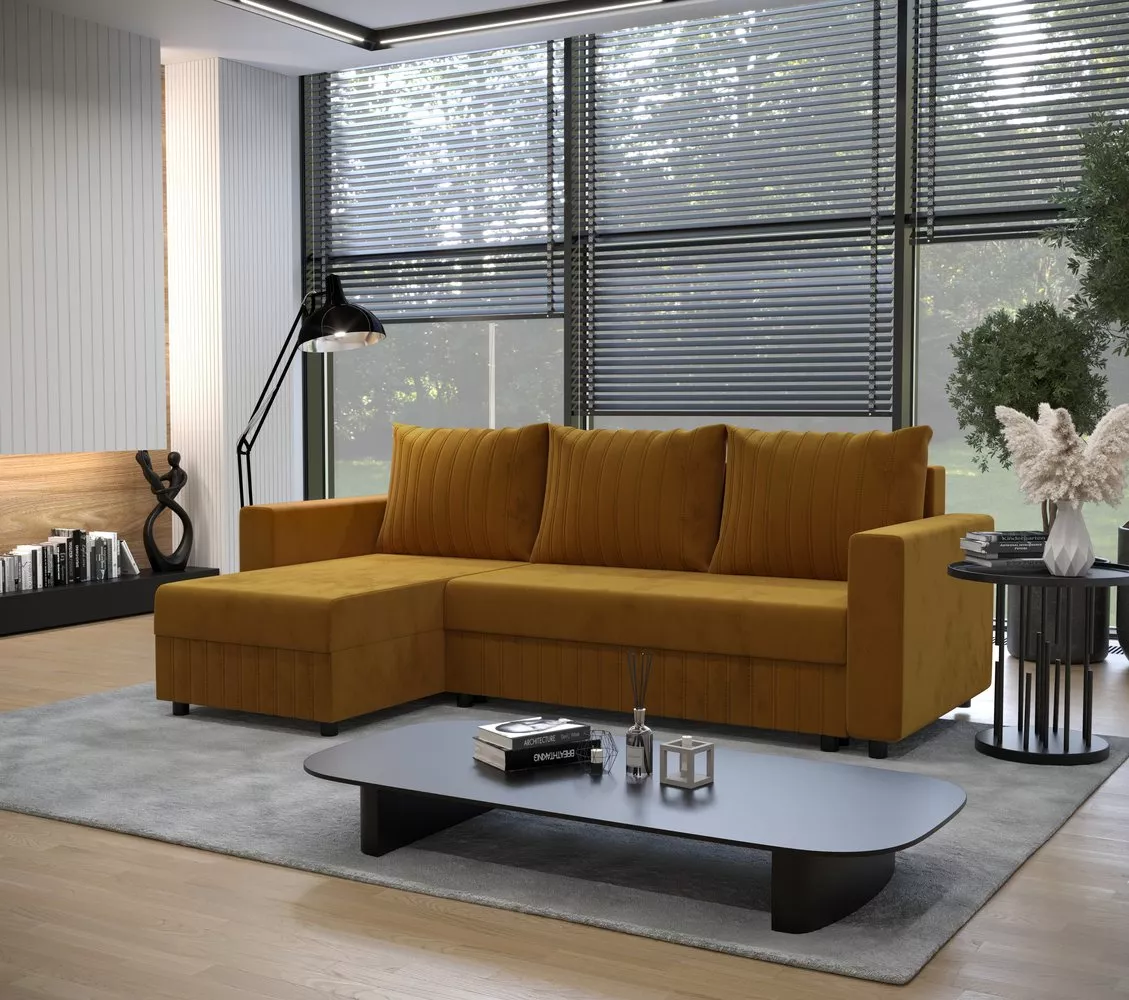 Moderní rohová sedačka EDITH v mnohobarevném provedení bude pěknou ozdobou každého obývacího pokoje. Nábytek uchvátí stylovou, pevnou konstrukcí a kvalitou látky. Každému interiéru dodá moderní vzhled.