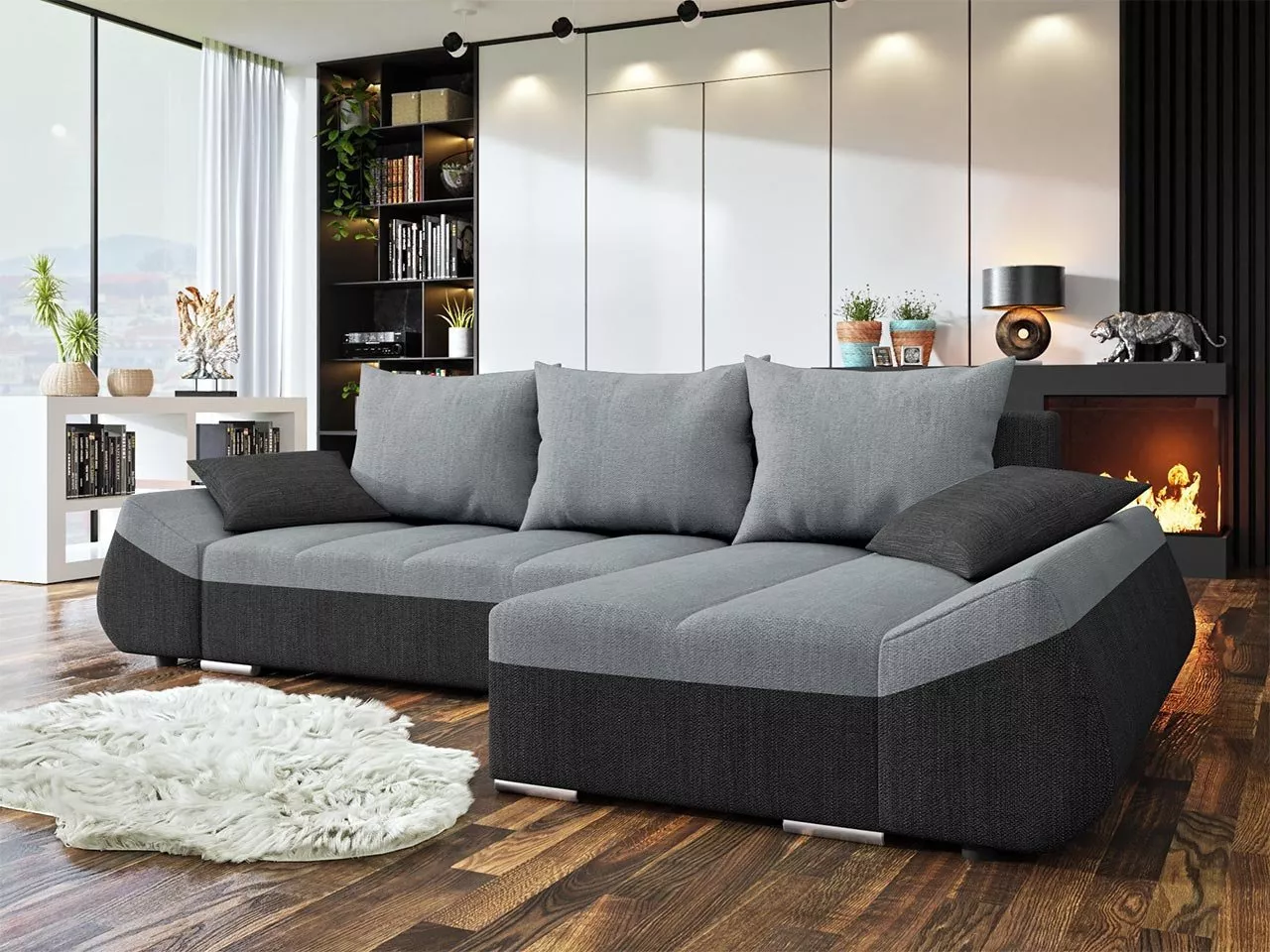 Rohová rozkládací sedačka QUITA - světlá šedá / šedá