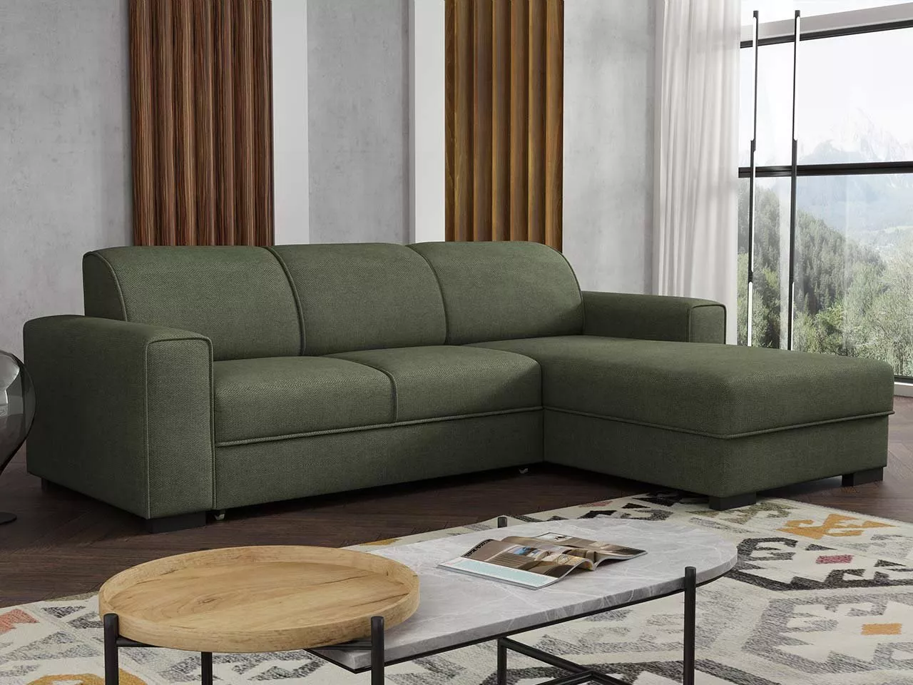 Rohová sedačka na každodenní spaní ROSLYN - zelená, pravý roh