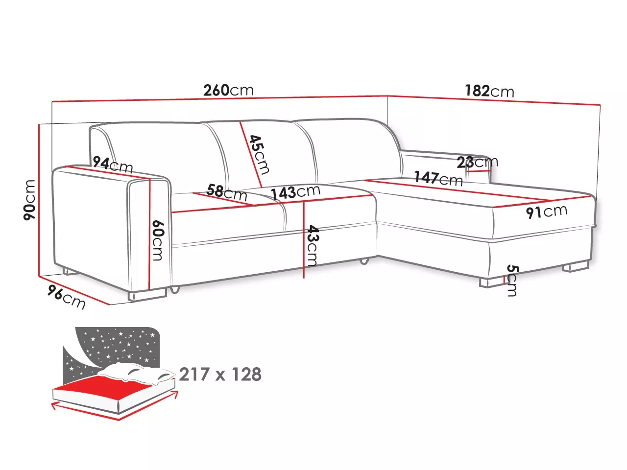 Rohová sedačka ROSLYN nabízí spoustu místa k sezení a relaxaci. Jednoduchým rozložením navíc získáte spací plochu 128x217 cm, kterou lze využít na každodenní spaní. Samozřejmostí je také úložný prostor na lůžkoviny.