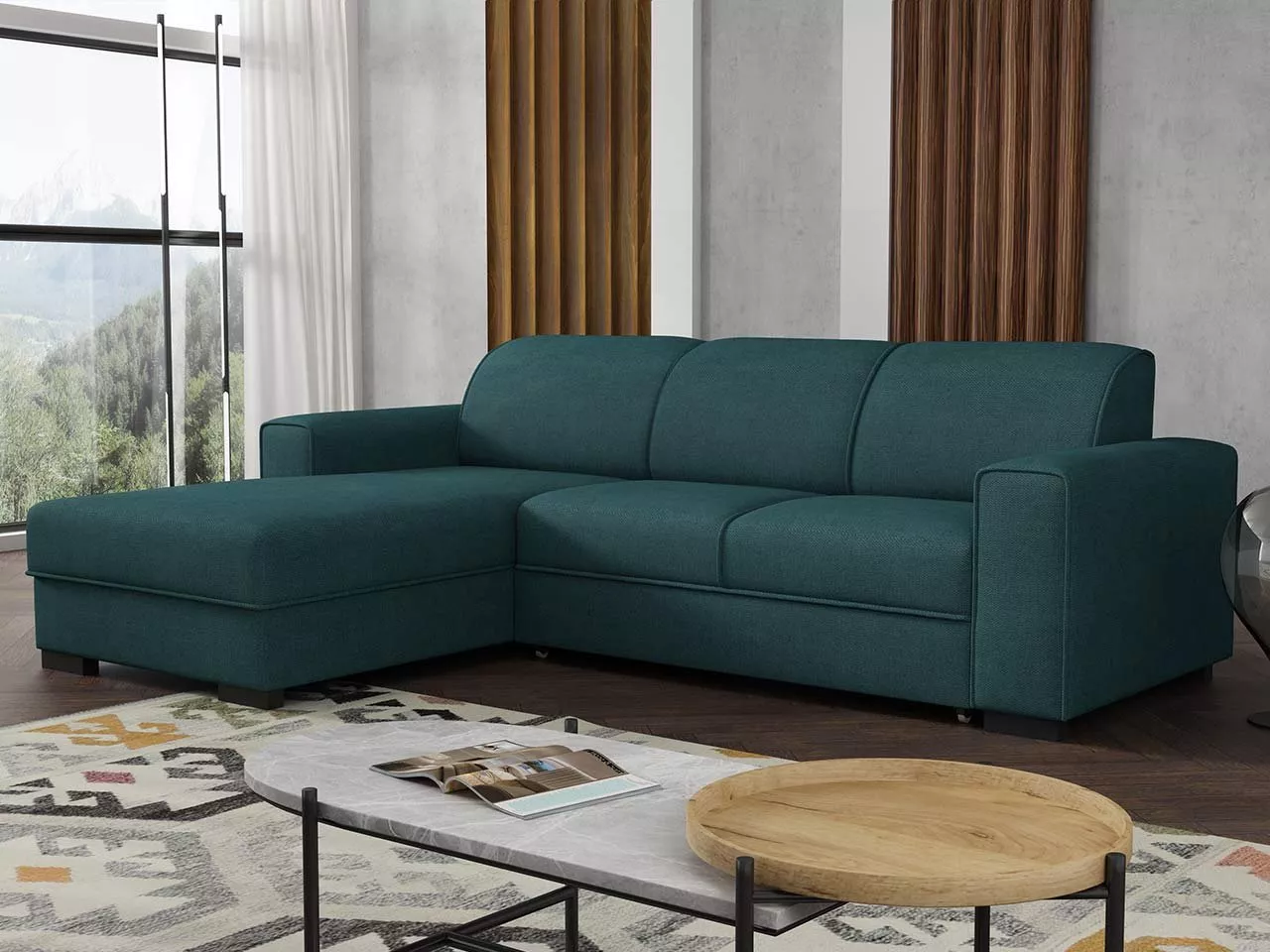 Rohová sedačka na každodenní spaní ROSLYN - modrá, levý roh