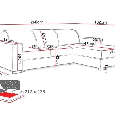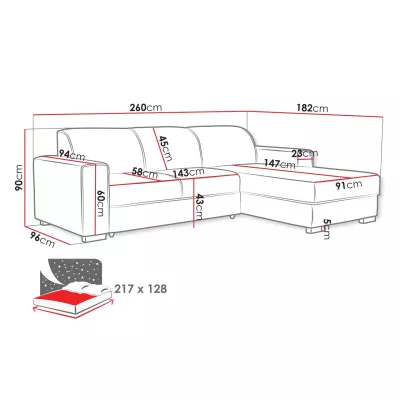 Rohová sedačka ROSLYN nabízí spoustu místa k sezení a relaxaci. Jednoduchým rozložením navíc získáte spací plochu 128x217 cm, kterou lze využít na každodenní spaní. Samozřejmostí je také úložný prostor na lůžkoviny.