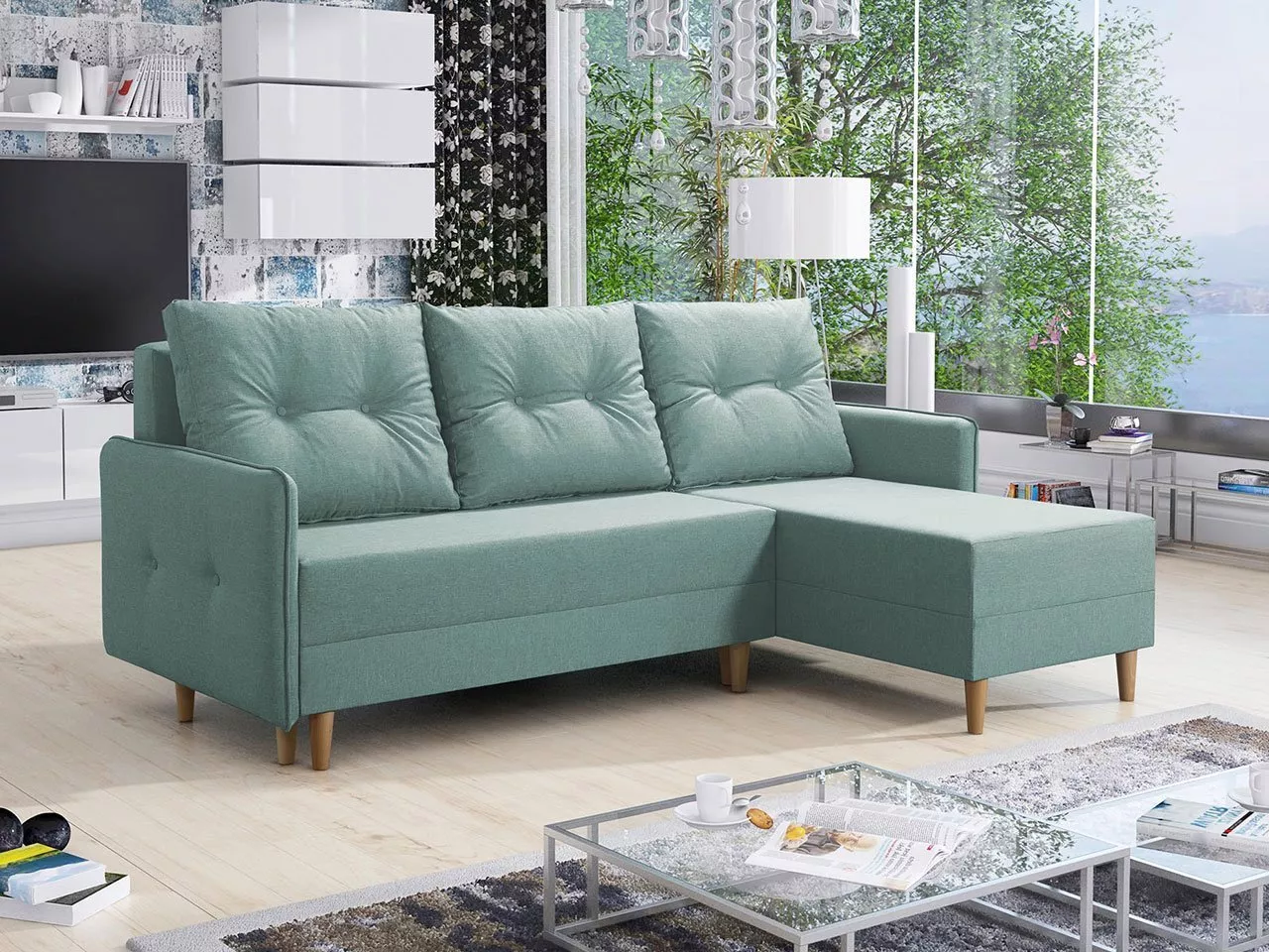 Rozkládací rohová sedací souprava RICARDA - světlá modrá