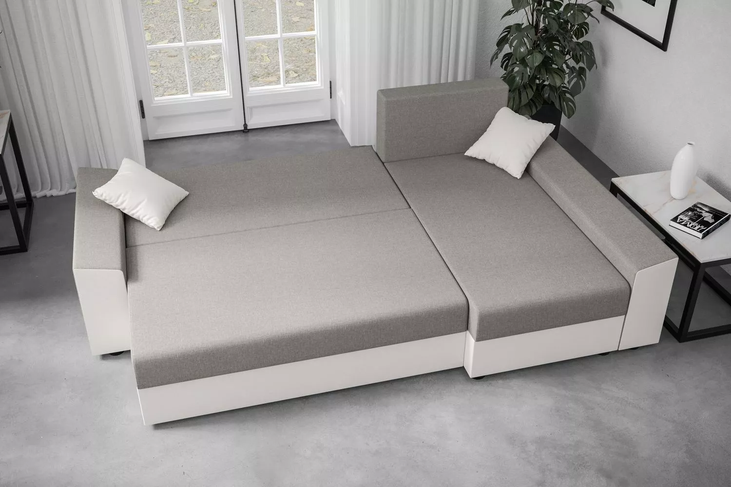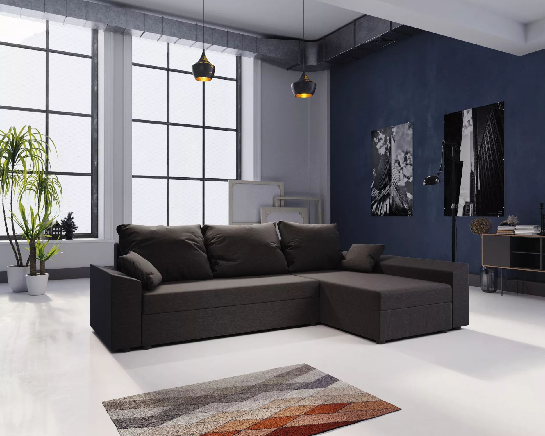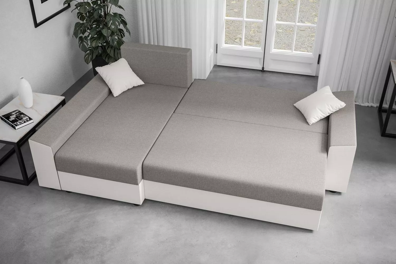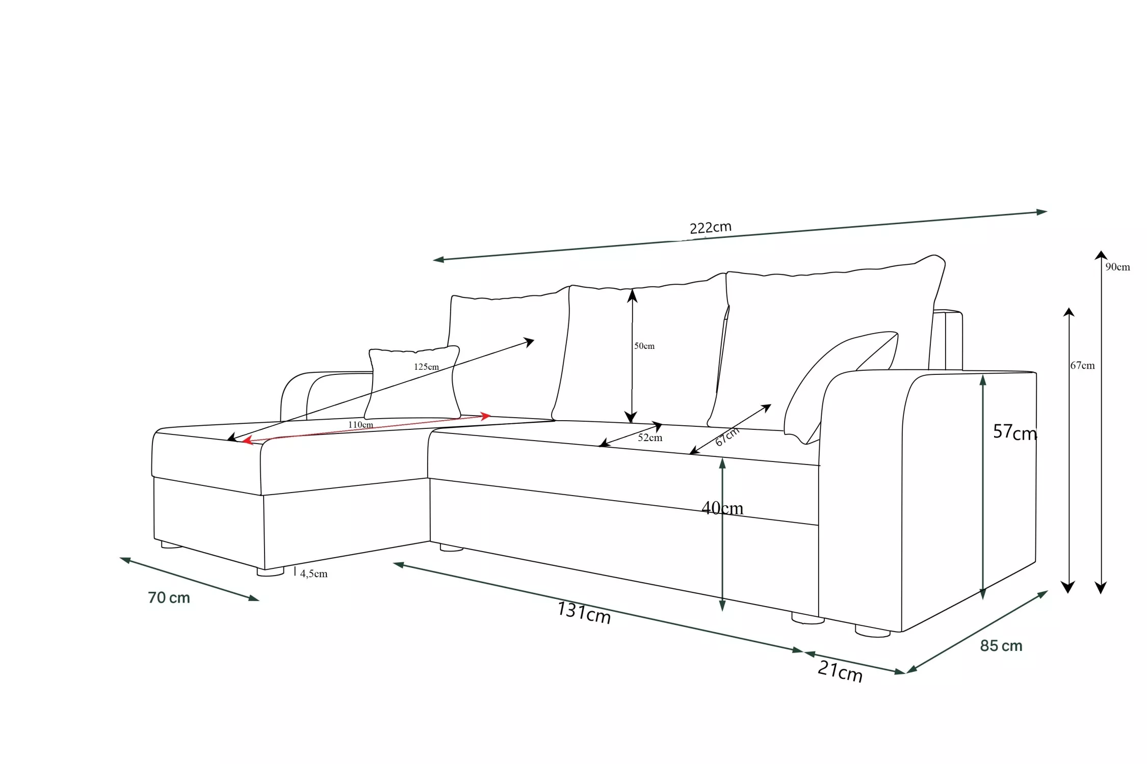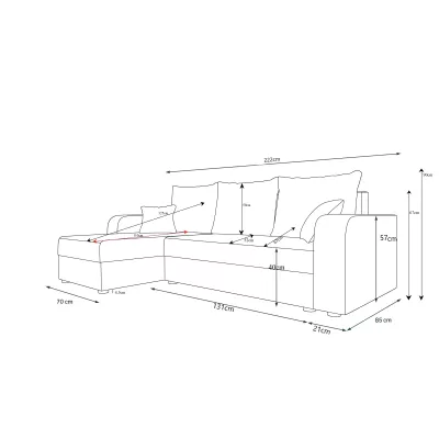 Elegantní rozkládací sedací souprava má pevnou konstrukci a potah z kvalitní pevné látky. Její moderní design je vhodný do všech současných interiérů. Jistě taky uvítáte úložný prostor a snadné rozkládání pohovky na lůžkovou podobu. Součástí jsou i polštáře, které disponují snímatelným potahem.