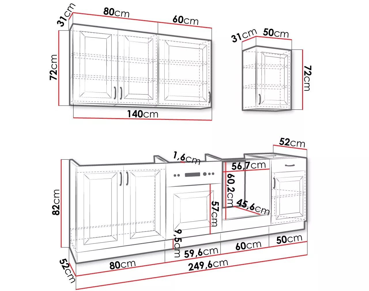 - skříňka pod dřez: 80/82/52 cm