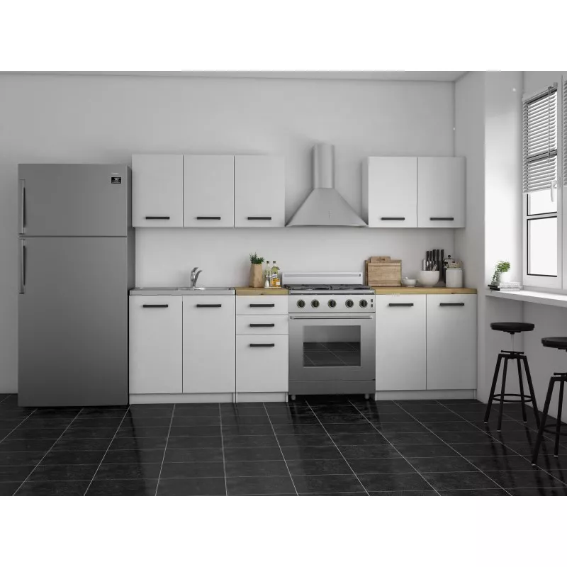 Kuchyňská linka KERLI je vytvořena pro ty z vás, kteří bojují s malými prostory a hledají řešení, která splní mnoho funkcí a zároveň vytvoří moderní verzi útulného interiéru. Každá skříňka má svou vlastní desku, díky které je lze snadno jakkoli kombinovat. Skříňky jsou odolné vůči poškrábání, vlhkosti a vysokým teplotám.