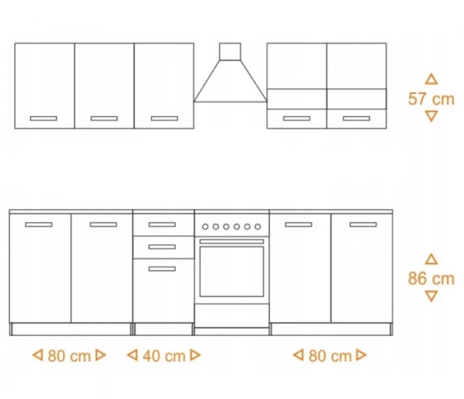 - 2x horní dvoudveřová skříňka 80: 80/57/28 cm