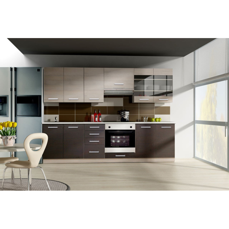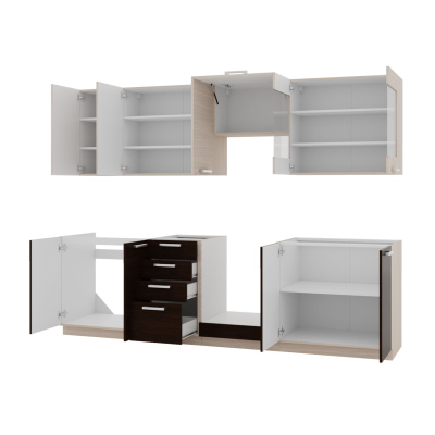 Kuchyňská linka 260/260 cm JING - dub ferrara / legno + LED a příborník ZDARMA