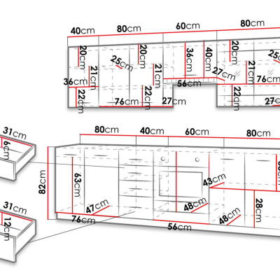 - dolní dvoudveřová skříňka 80: 80/82/52 cm